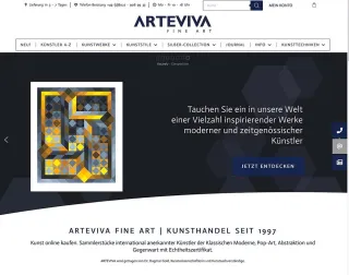 1997 wurde der Kunsthandel ARTEVIVA FINE ART gegründet mit Fokus auf werthaltige Kunst. Der Angebotsschwerpunkt liegt ganz bewusst auf originale Papierarbeiten und limitierte Skulpturen der Klassischen Moderne und etablierter Gegenwartskunst, um sowohl für Sammler als auch für Kunstnovizen ein erschwingliches Preisspektrum zu bieten. Dabei werden jene Werke besonders berücksichtigt, in der wir die besten Entwicklungschancen sehen. In der Kategorie „Sterling Silber Collection" wird als niveauvolle Ergänzung zu dem Kunstangebot hochwertiger zeitgemäßer Echtschmuck und Accesssoires von diplomierten, ausgezeichneten Schmuckdesignern angeboten.